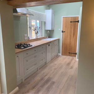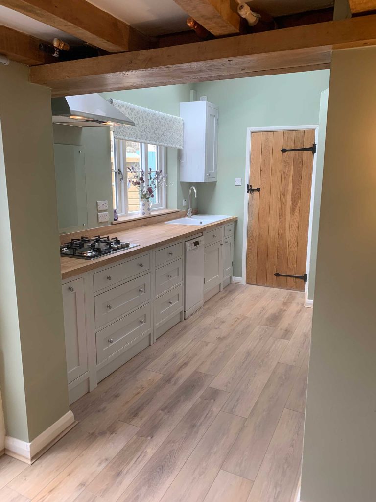 New rigid vinyl flooring and underlay added. Running through into the utility area and toilet.