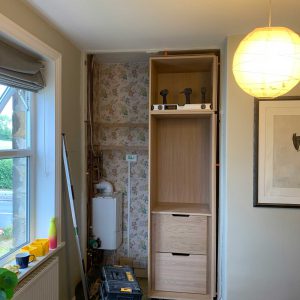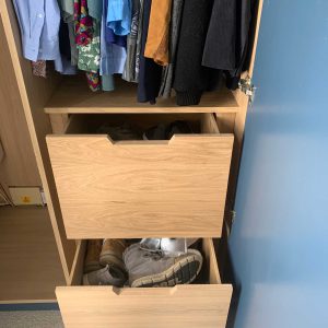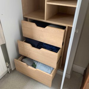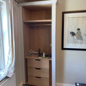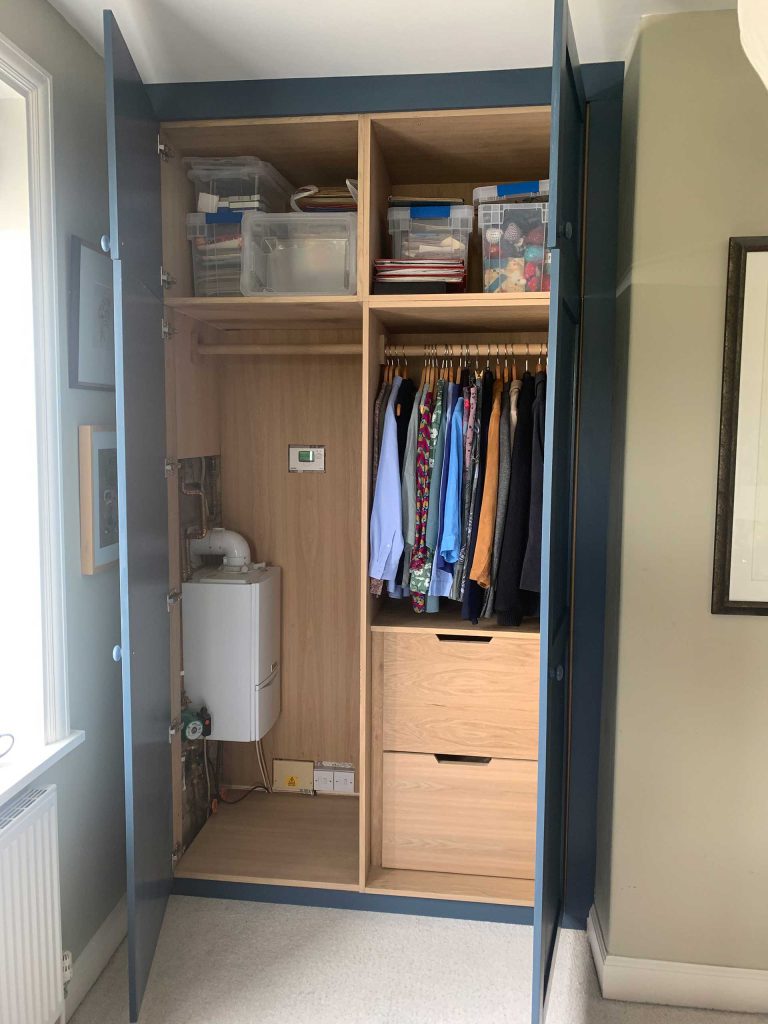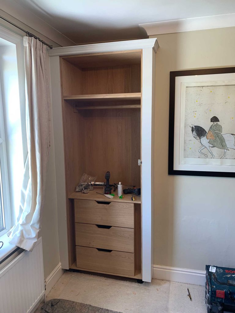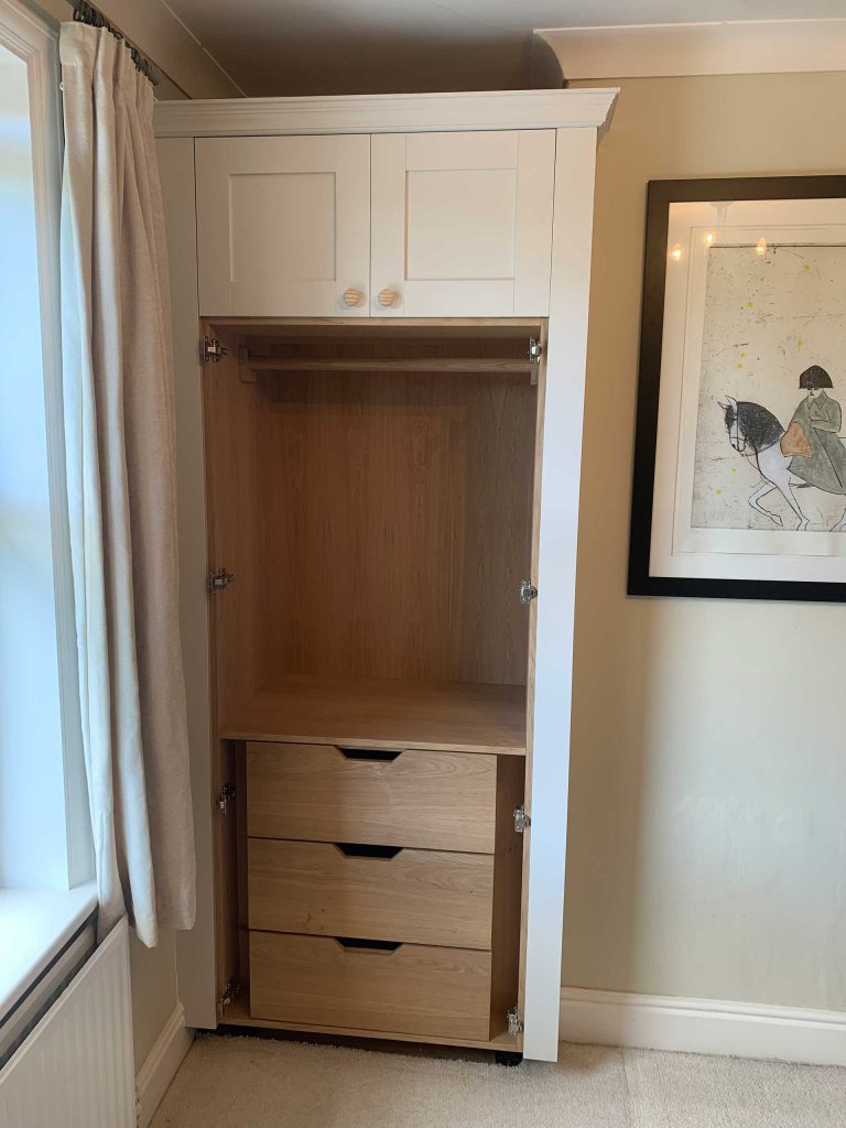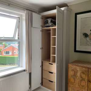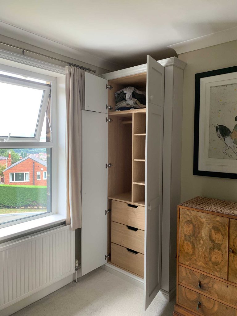 • Shaker style fitted wardrobes installed in Otley with a hand painted finish