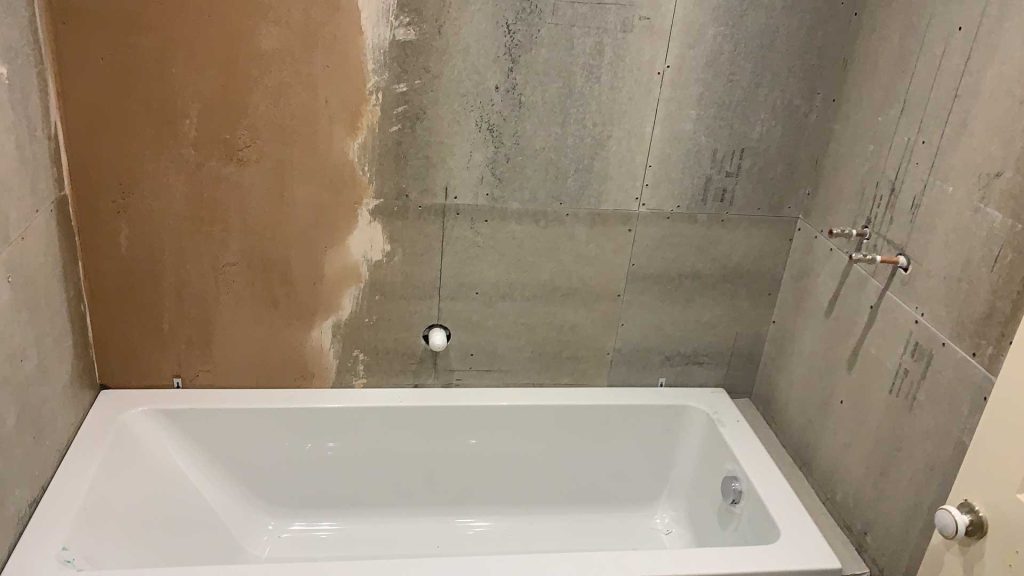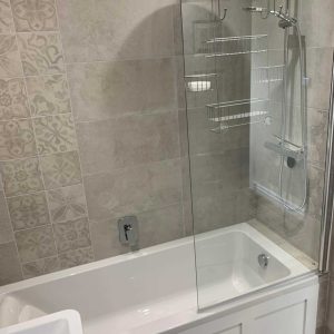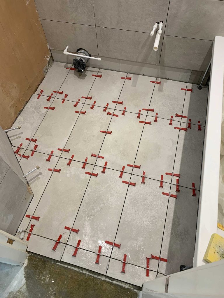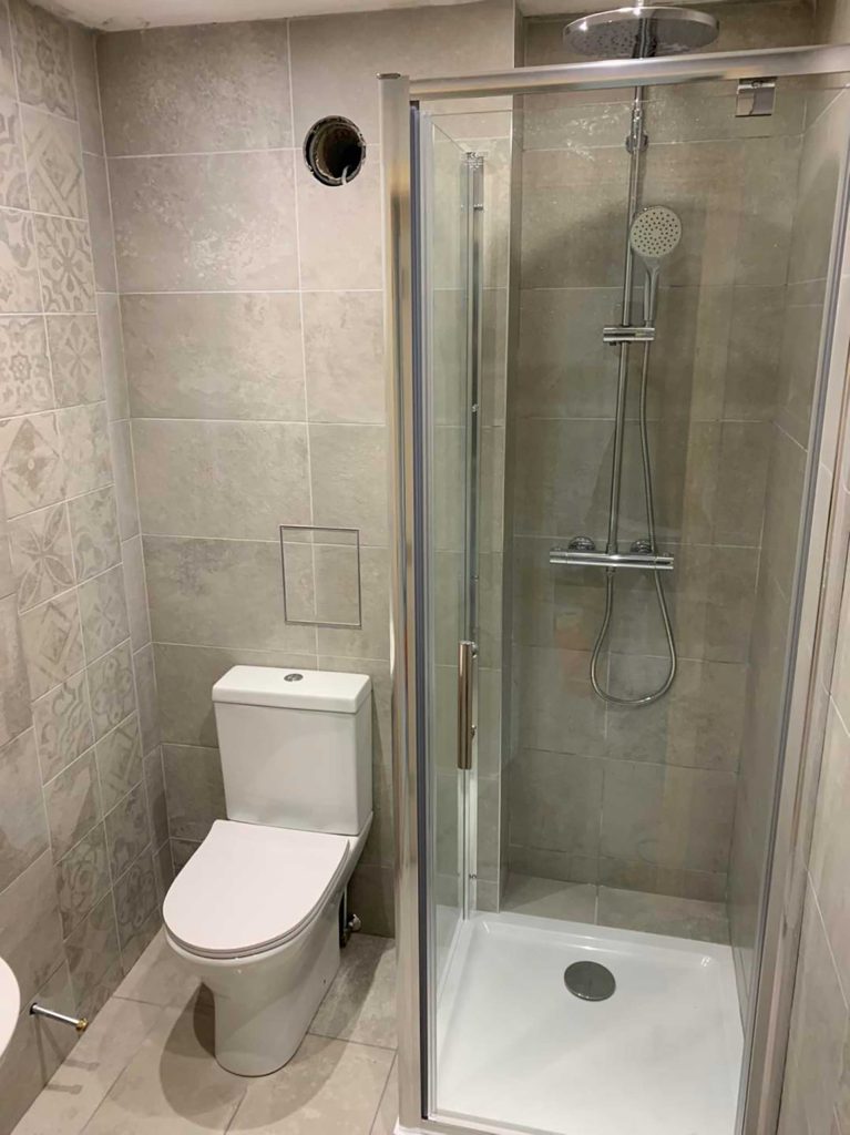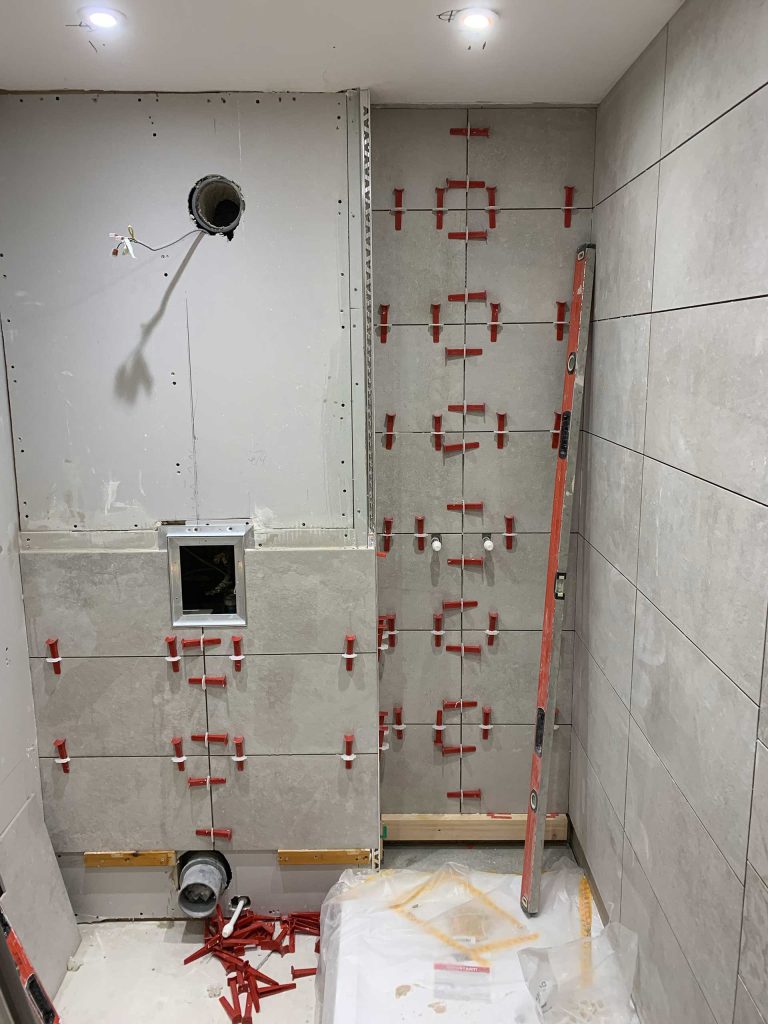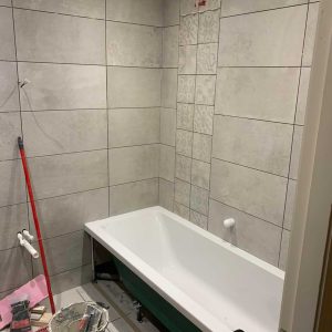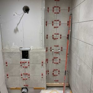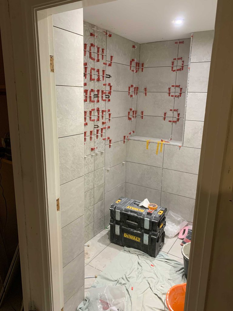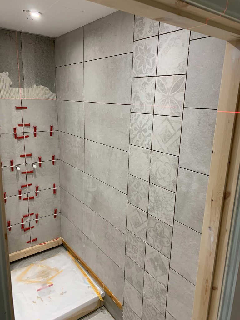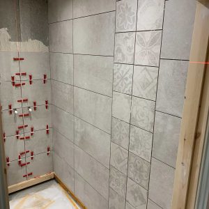With wall and floor tiles installed.
