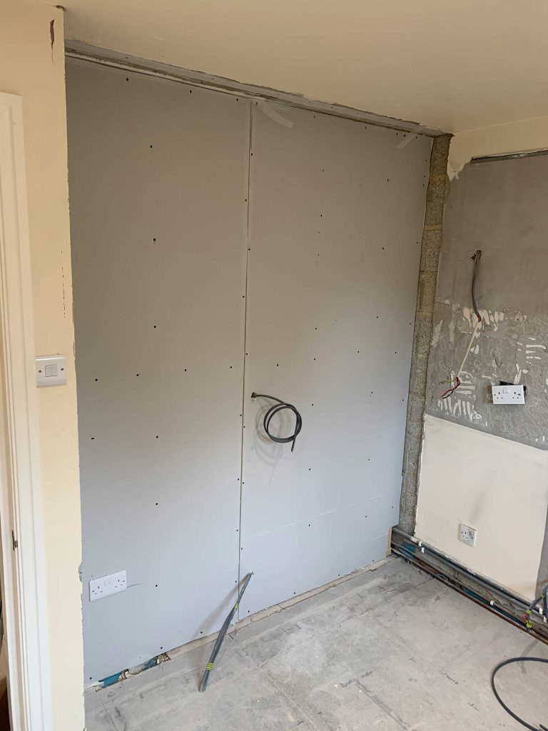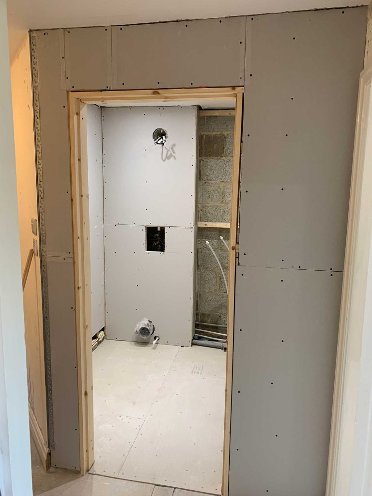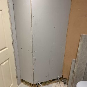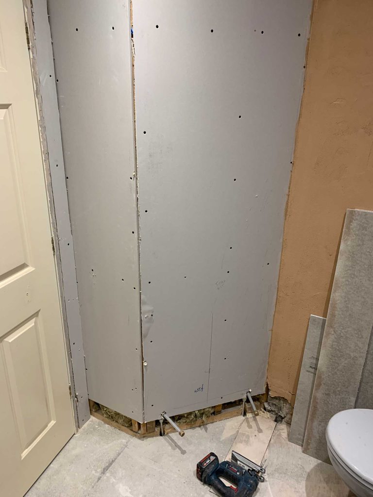 - New stud work, plasterboard, hardie board and plaster where needed