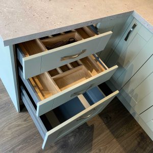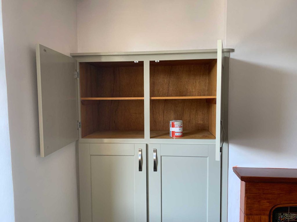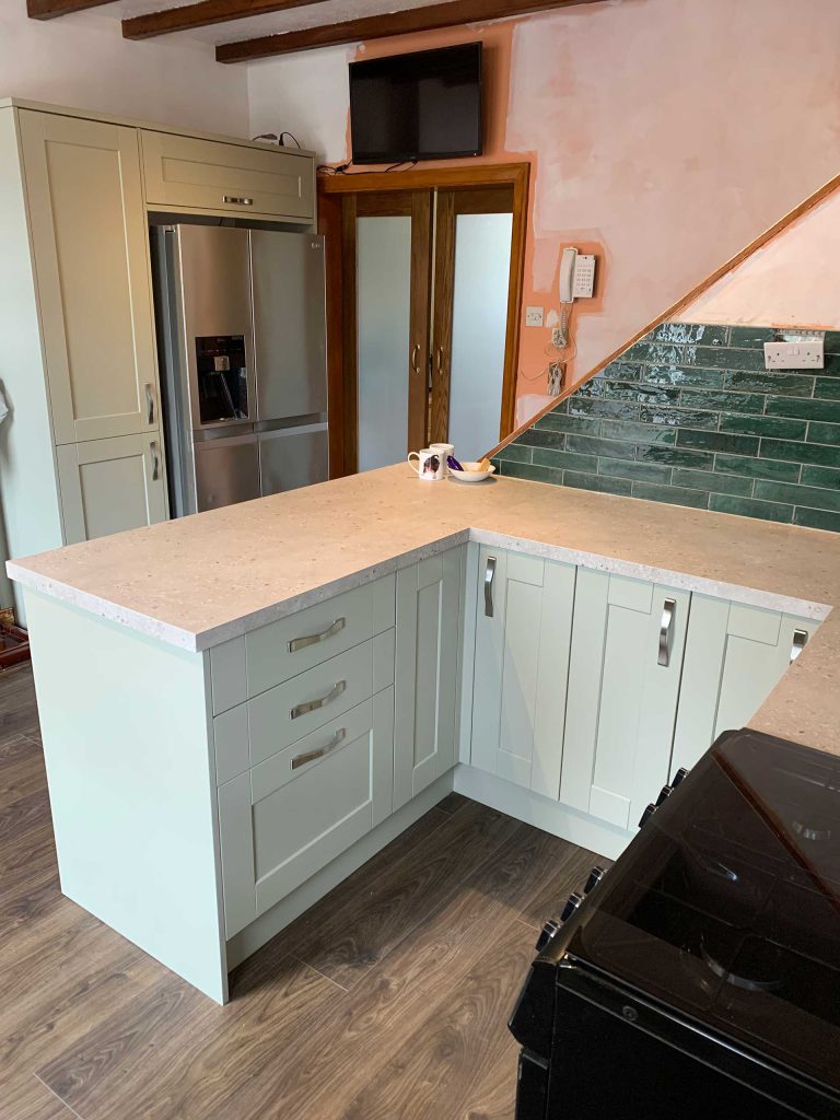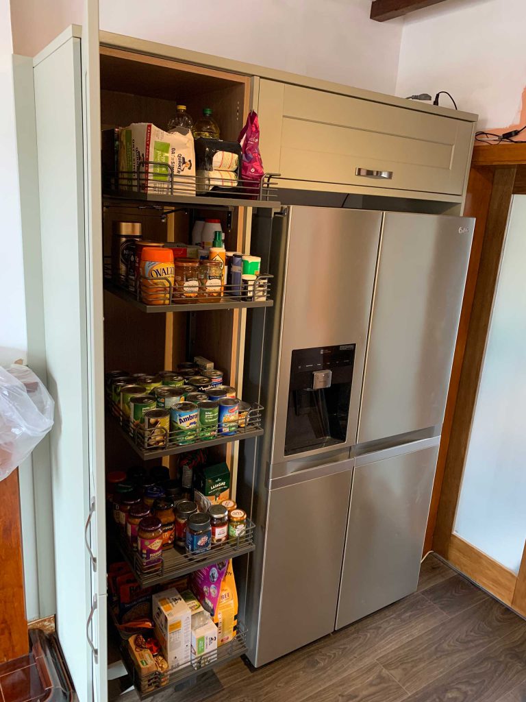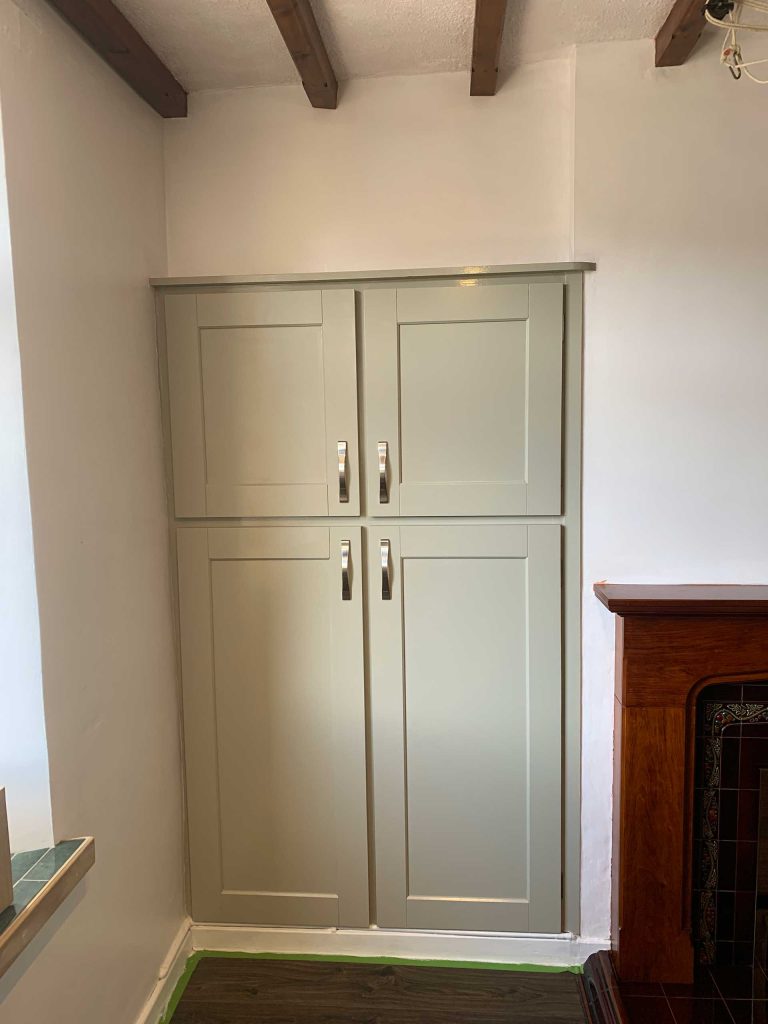 Unfortunately no standard doors from the Fairford Howdens range would fit the existing door openings, so all new doors were made to measure and hand painted to match Ral colour code of the new kitchen.