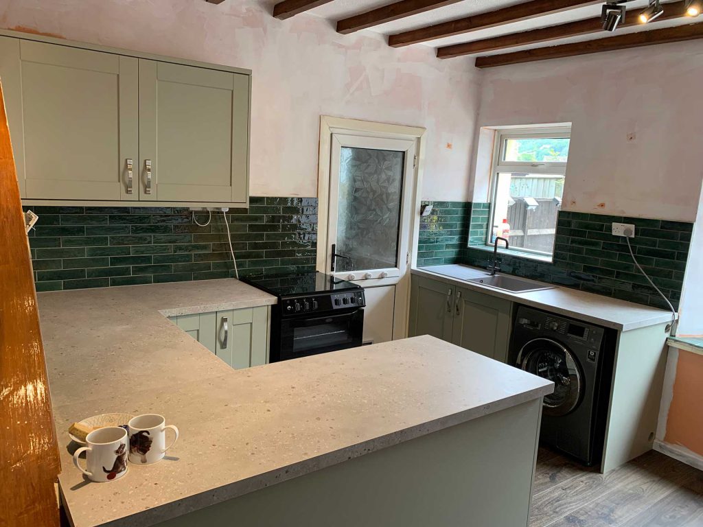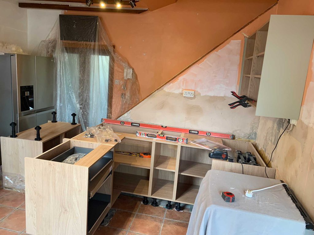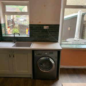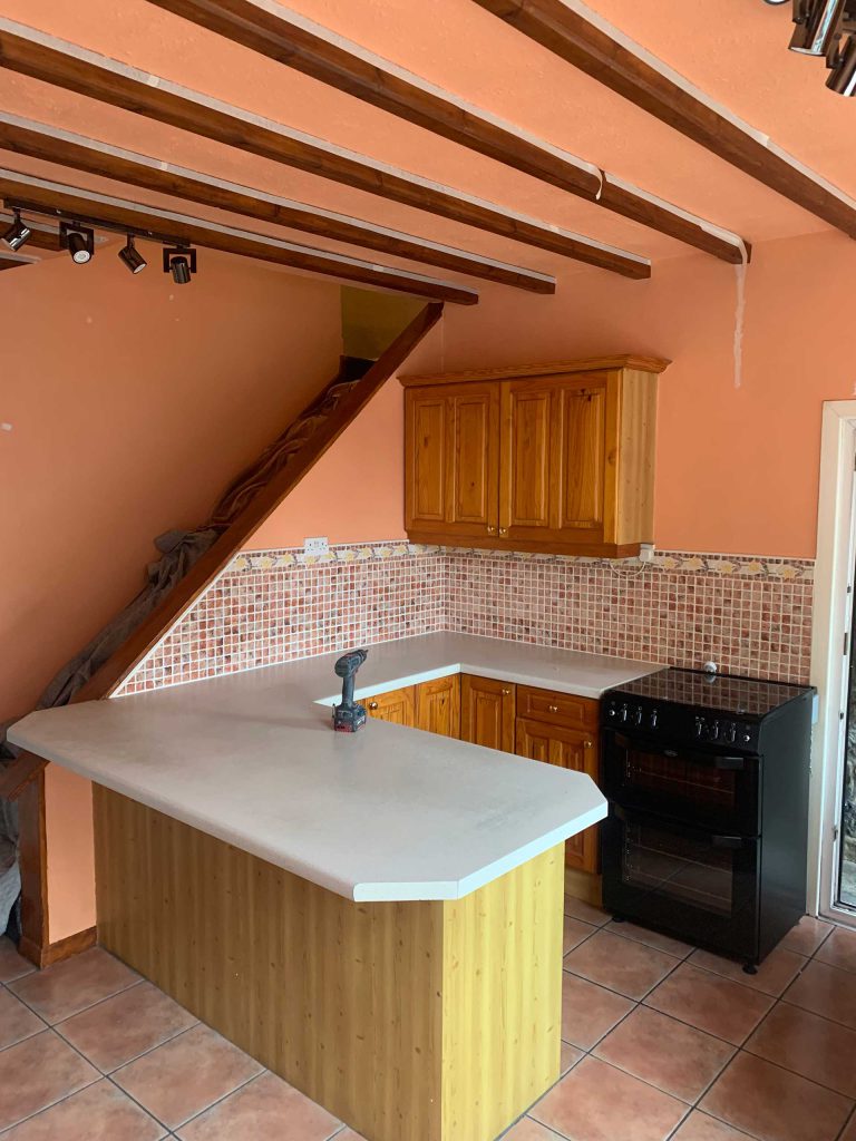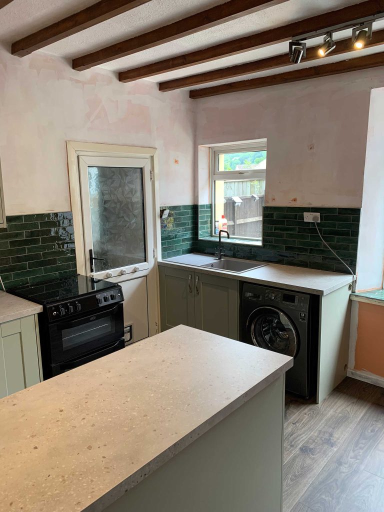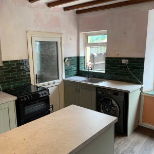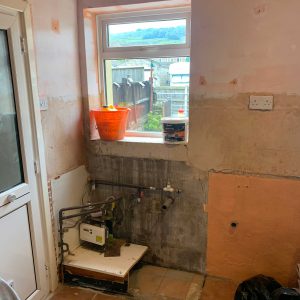 Old kitchen was removed and plastered where needed ready for wall tiles, Also floor prep ready for flooring.